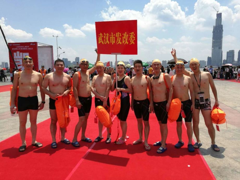 2017年7月16日上午,2017第43届武汉7.16国际渡江节隆重开幕,5300多名境内外游泳爱好者浩浩荡荡博浪长江。市发改委游泳队张纯松、刘陆一、黄强、尹毕军、符浩然、刘雯、成晖、王小奎、孙勇等9名同志劈波斩浪、奋勇拼搏,成功横渡长江,倾情演绎“万里长江横渡,极目楚天舒”的豪迈壮举,展现了市发改委勇于进取、敢于拼搏的良好精神风貌。