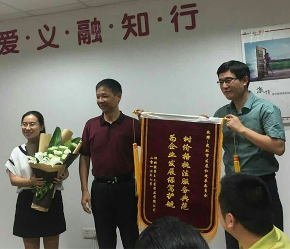 培训结束,为表达对武汉市物价监督检查局的感谢,湖北孩子王儿童用品有限公司特意送上了题为“树价格执法服务典范,为企业发展保驾护航”的锦旗。