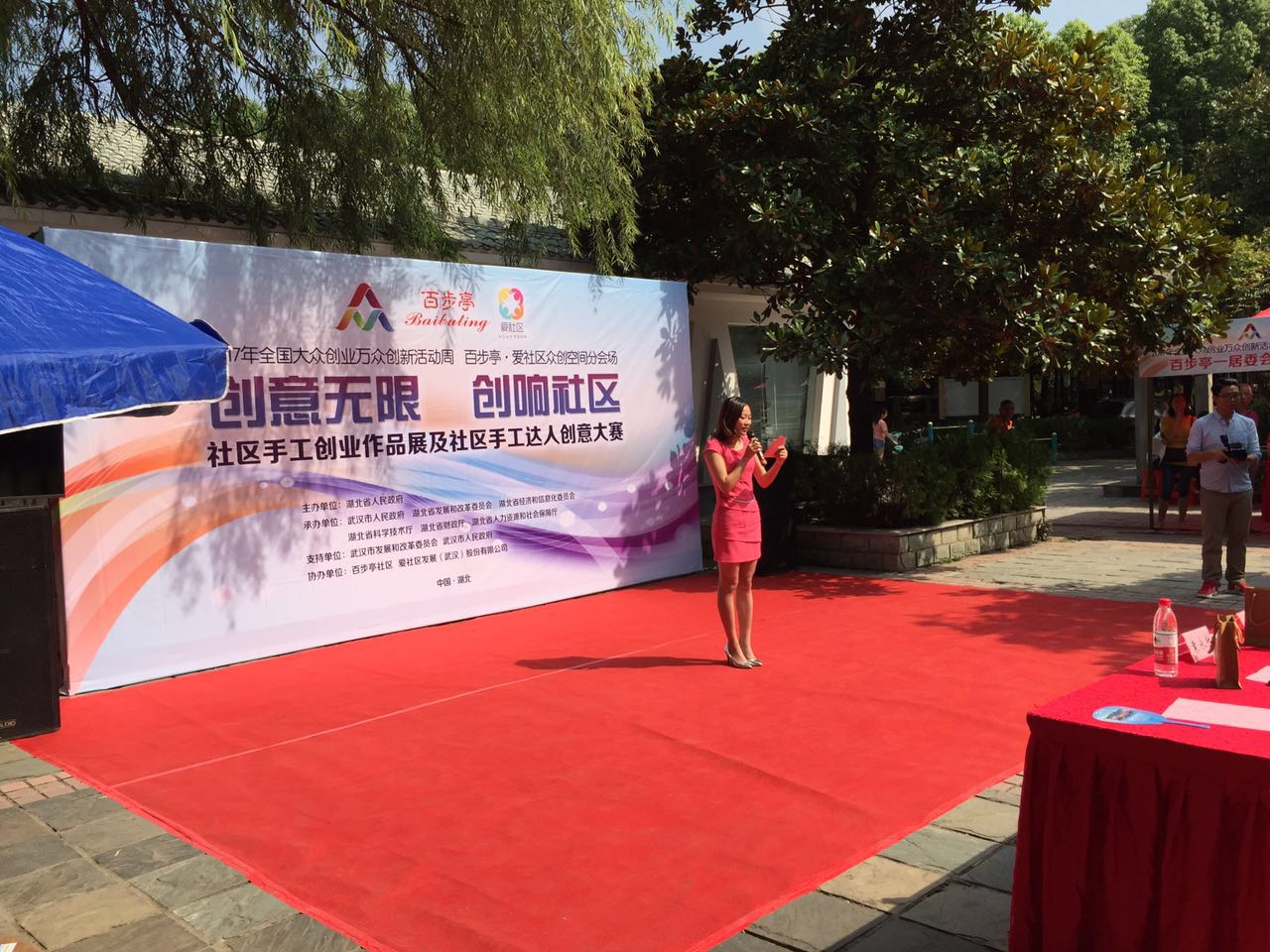 9月16日,武汉市双创活动周江岸区主会场在江岸区百步亭社区举办了“创意无限 创响社区”为主题的社区手工创业作品展及社区手工达人创意大赛。百步亭社区组织了岸区社区特色创意手工作品展、居民自由DIY展区等活动项目,参展作品达200件,参加居民300多人。
