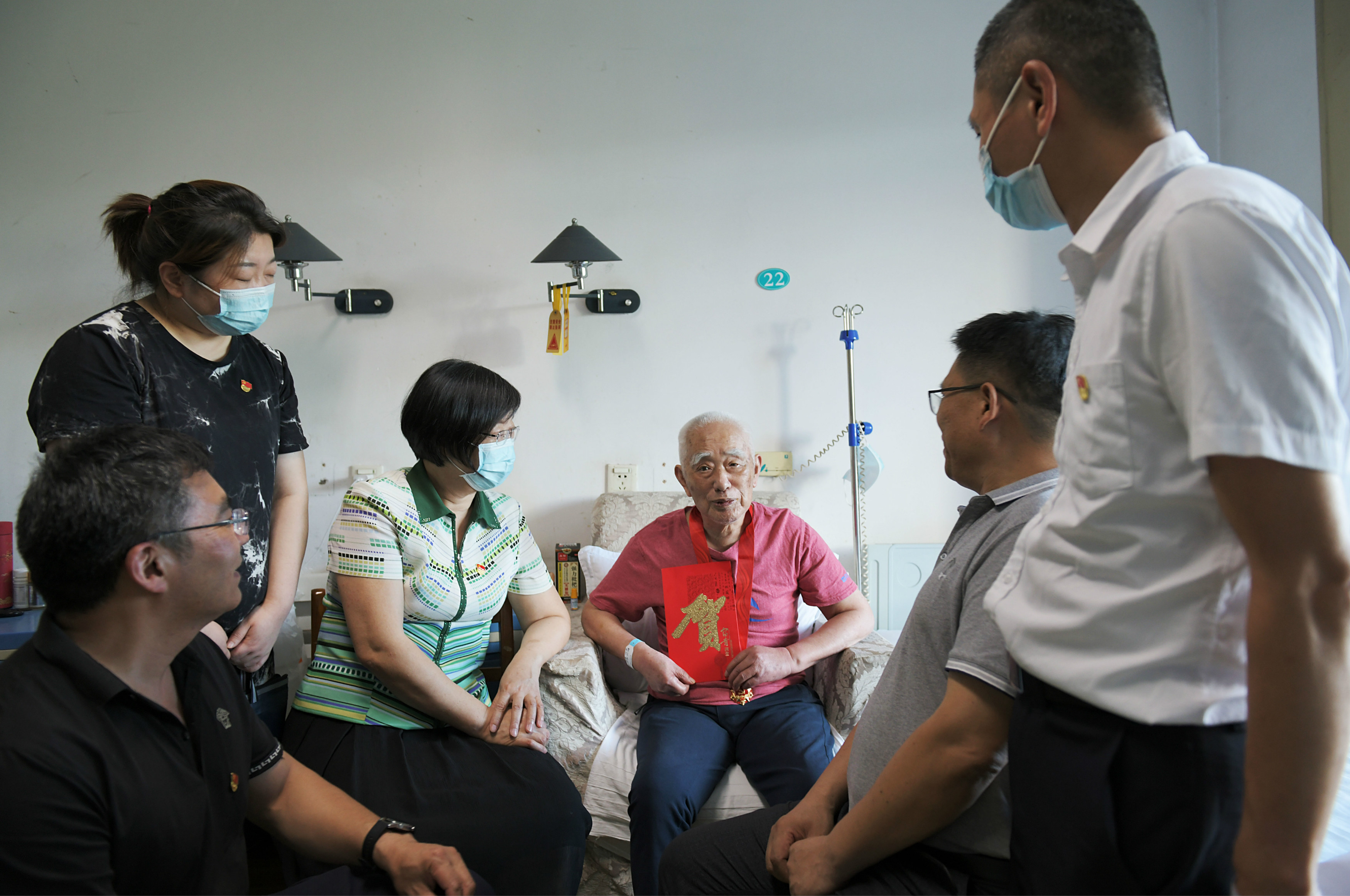 6月24日,在武汉市东湖医院一间病房内,来自武汉市发改委和武汉战略研究院的部分党员干部开展了一次特殊的活动。与党同龄的老党员陈梦浓,在病床前给大家上了一堂特殊的党课。