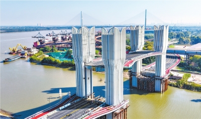 据悉,工业港河是武钢集团有限公司和青山船厂对外运输的要道,为保障汛期船舶顺利通航,大桥必须保障充足的净空高度。若采用传统“一跨过河”的大桥,桥长需达3公里左右,建设成本将翻倍。