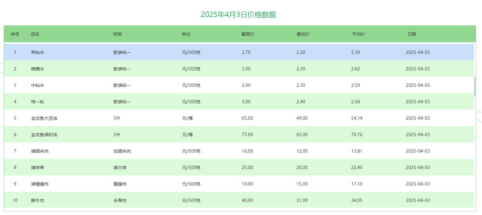 发布时间: 2025-04-03 16:30:00来源:武汉市价格监测平台字号:[ 大 中 小 ]分享: