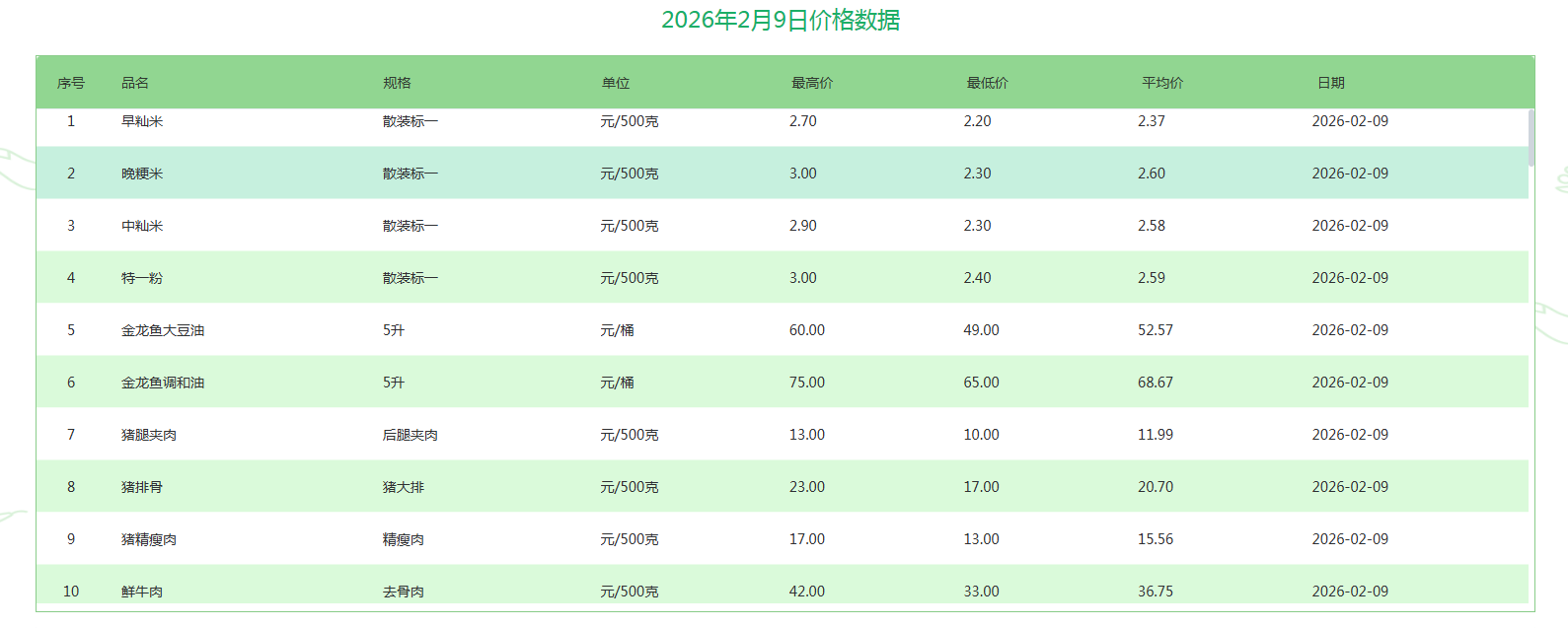 发布时间: 2026-02-09 15:22:00来源:武汉市价格监测平台字号:[ 大 中 小 ]分享: