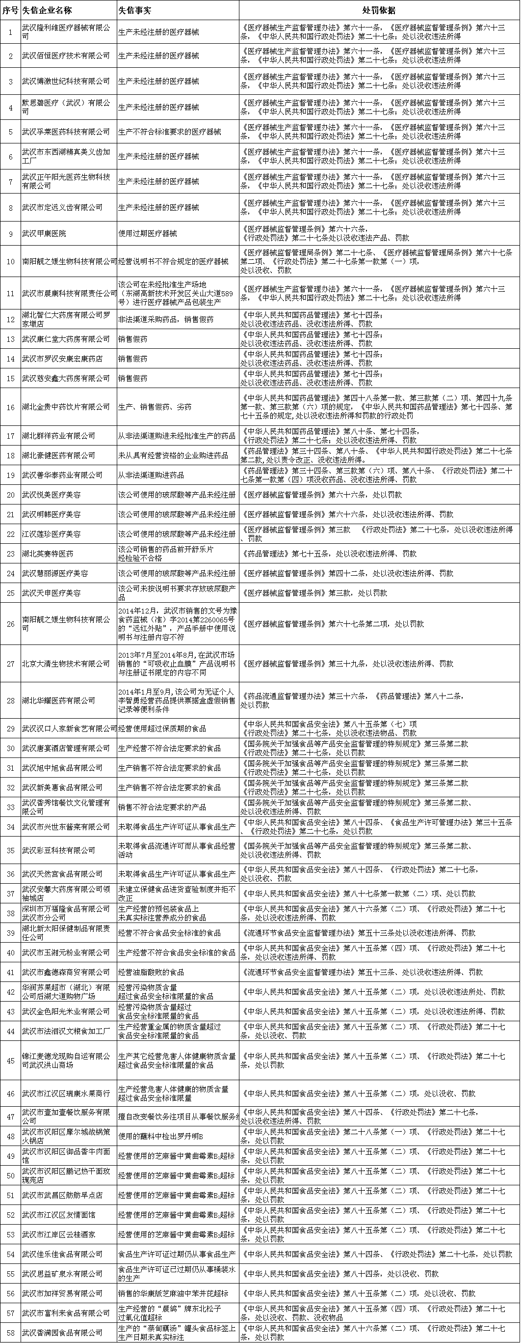 信用体系建设动态—武汉市文明办、市食药监局联合发布食品药品失信企业名单