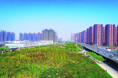 在二七大桥罗家港明渠边,昔日的巨型渣土山披上“绿装”