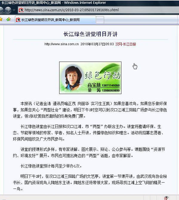 由市发改委(综改办)、市水务局江滩办、长江日报社联合主办的“长江绿色讲堂”于3月28日14时在汉口江滩文艺亭开讲。