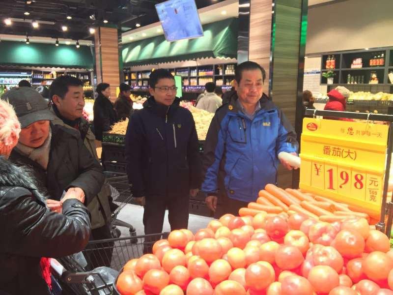 是日上午,检查组一行来到陈怀民、沈阳等菜场,检查雨雪冰冻天气下蔬菜、副食品商品供应情况及价格水平。菜场内,各摊位井然有序,日常蔬菜、肉类等价格与平日大体相当,未出现大幅度波动。随后,检查组又来到中百仓储黄浦路店对超市的商品供应和价格进行检查,商品价格未见明显波动,明码标价情况良好,居民群众普遍反映较好。