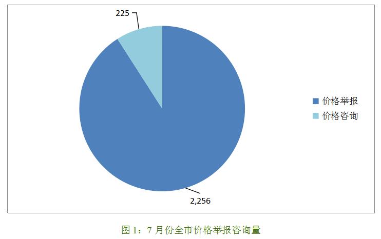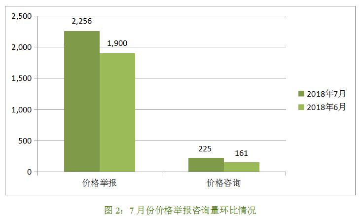7月份,全市共受理价格举报咨询2,481件,受理总量相比上月增加20%。其中,价格举报2,256件,环比增加19%;价格咨询225件,环比增加40%。