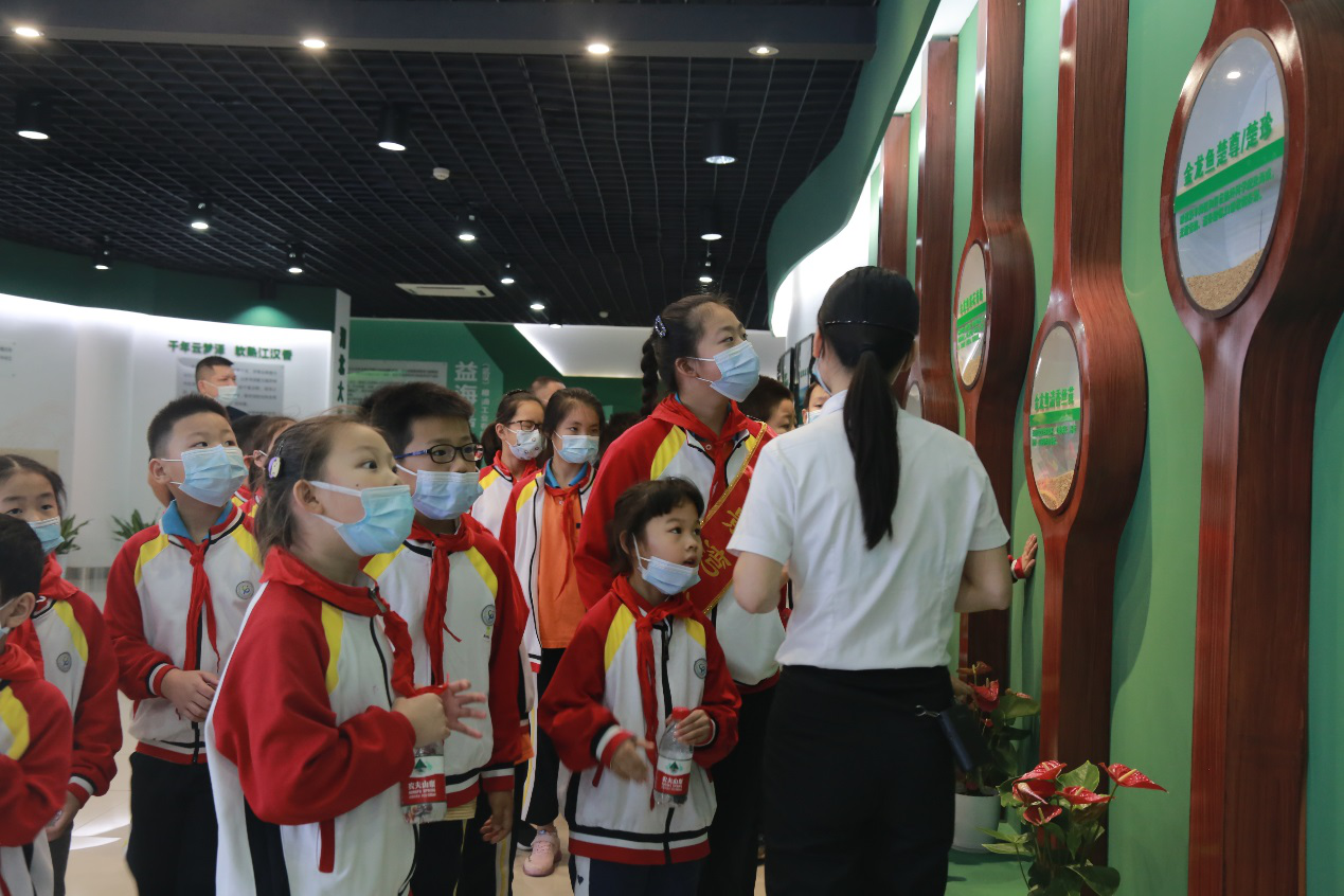 在基地讲解员的引导下,同学们了解湖北作为“鱼米之乡”,自古就有“云梦泽”的美称,有丰富的水稻资源,湖北人与水伴生,这是我们生活的美丽故乡;通过图片对照了解大米和食用油的加工工艺和产出过程,感受到每一粒粮食都来之不易。大家特别感兴趣是益海嘉里武汉公司即将在湖北实施的稻谷循环经济模式,一粒稻谷,除了稻谷出米、米糠出油、稻壳发电、稻壳灰还可以作为轮胎的添加剂,将稻谷“吃干榨尽”,努力实现稻谷的“全利用”。