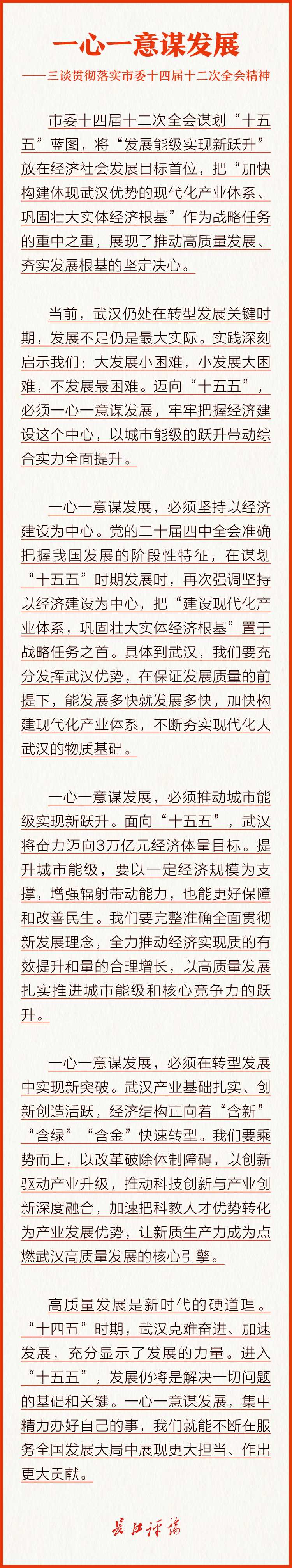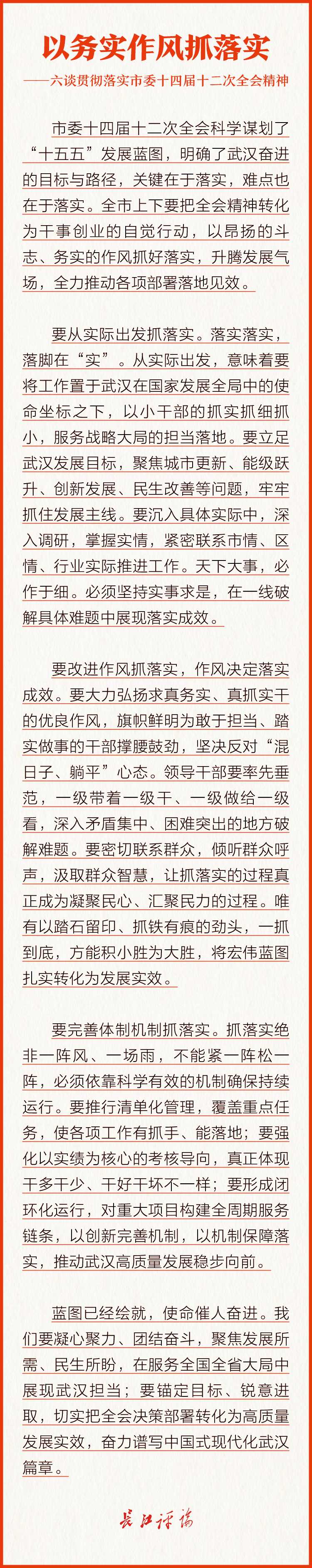 就贯彻落实市委十四届十二次全会精神长江日报连发六论
