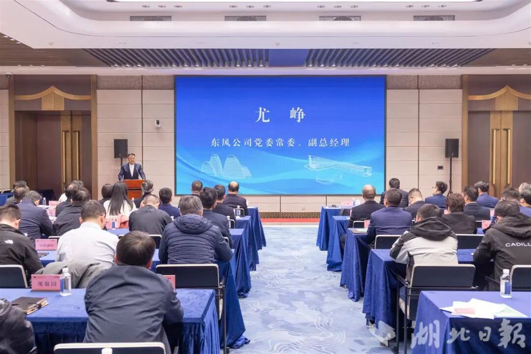 东风汽车公司党委常委、副总经理尤峥致辞。(湖北日报客户端通讯员 李岿 摄)