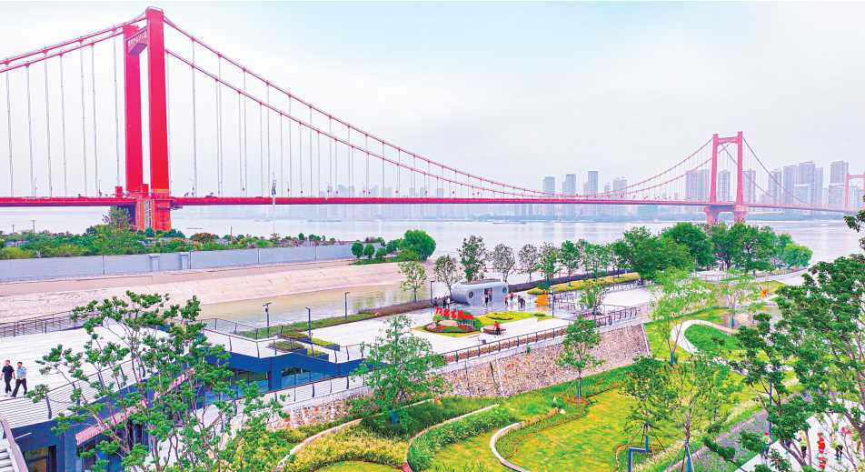 曾经阻断岸线的码头、单位企业陆续搬迁,散断的岸线串珠成线、各具风貌。杨泗港都市T台连通及整治工程改造废弃码头为“水岸秀场”、运动乐园,并留住“码头记忆”;南岸嘴节点改造提升工程在保持生态“留白”的基础上,进行景观整修,构建宜人生态公园格局;江汉碧道综合整治工程打通亲江观景“断点”,继而贯通三环内长江左岸岸线,并融入龙王庙、江汉关历史文化……百里长江生态廊道正在成为城市的名片、人民的乐园。